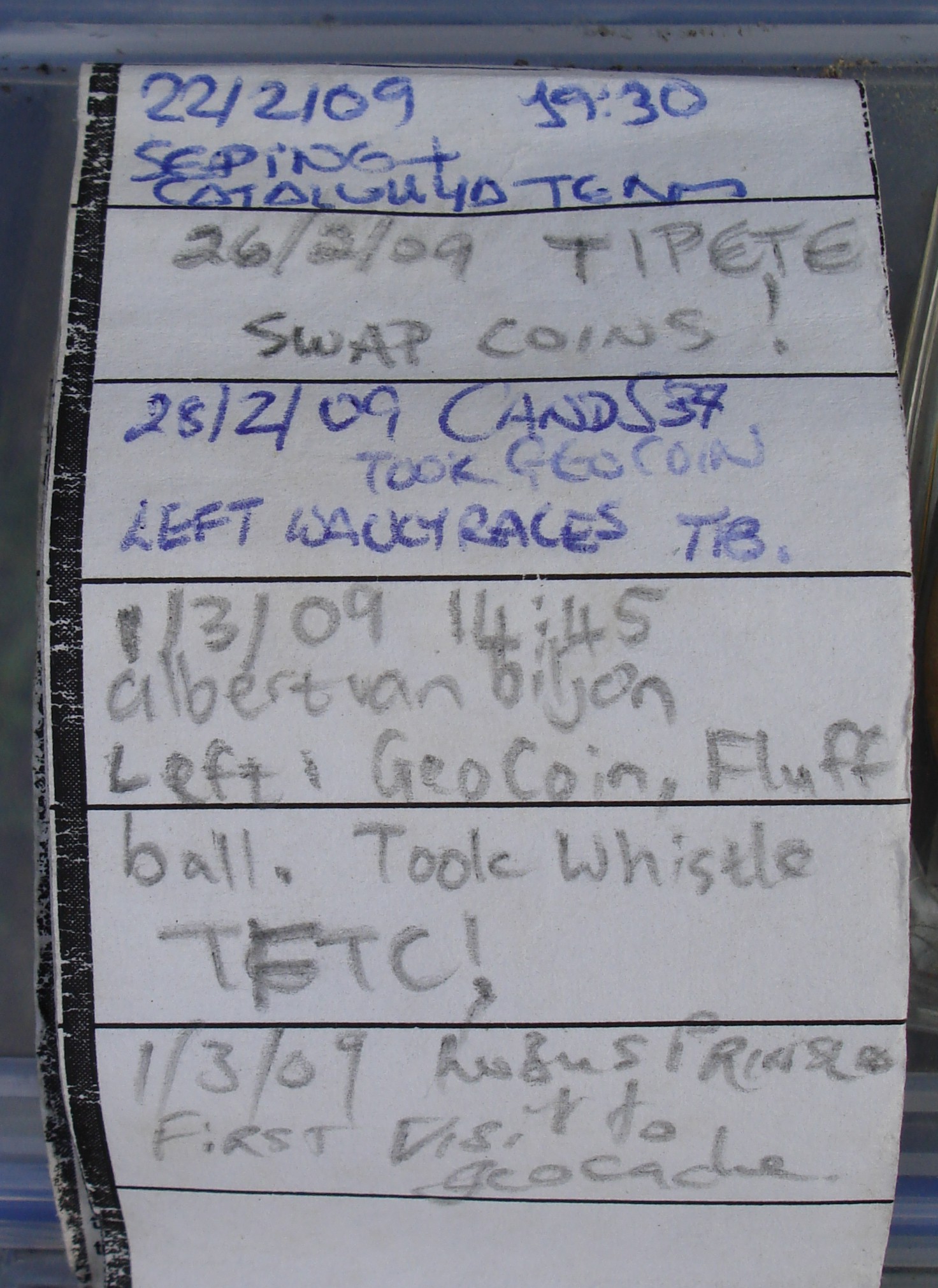 Die volgende GeoCoins en Travel Bugs het besoek afgelê: