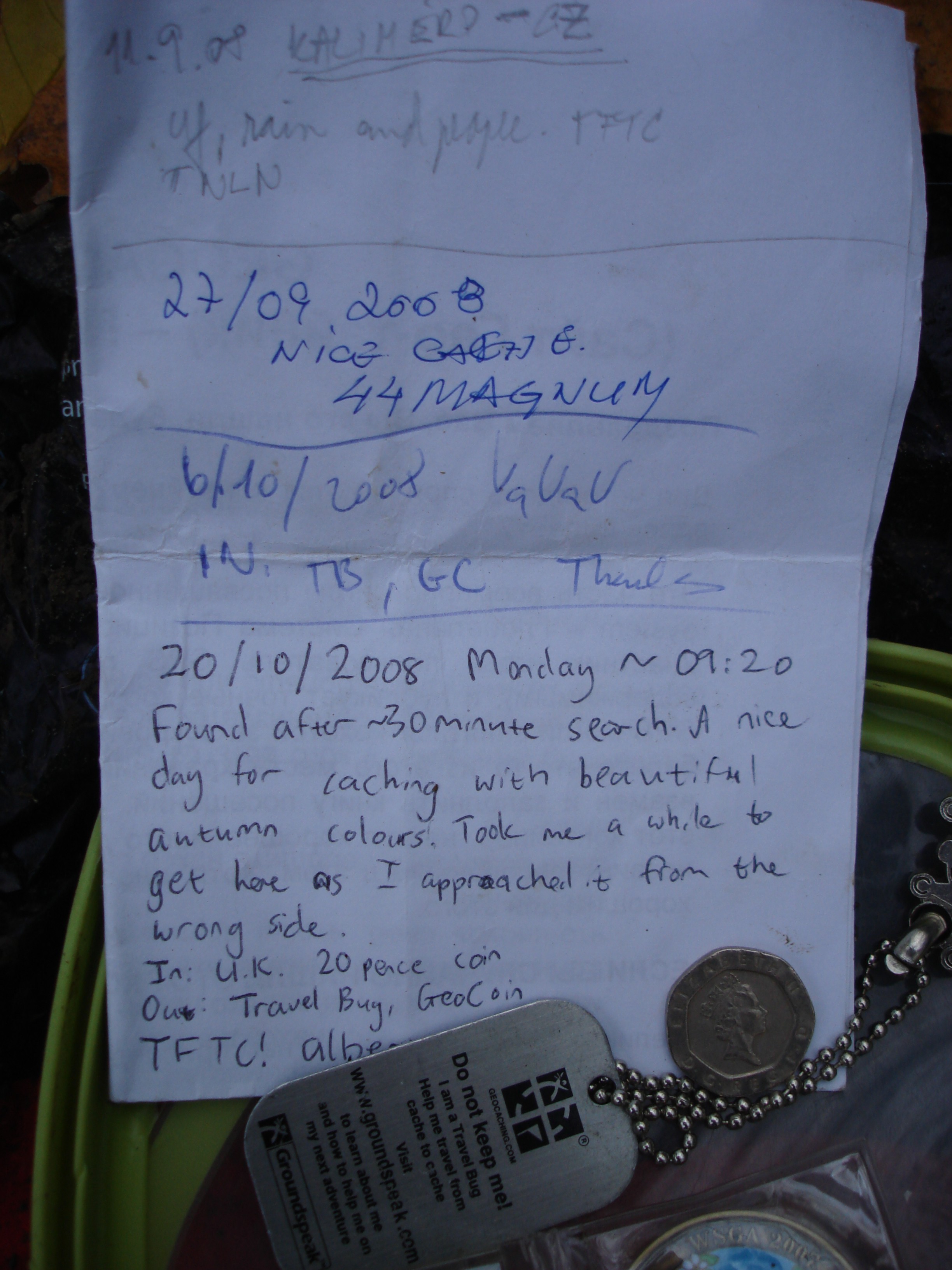 Kort na 07:00 die Maandagoggend arriveer my trein by die hoofstasie in Kyiv, en kies ek pad na die cache Beautiful city - KIEV toe (nadat ek my bagasie gaan toesluit het). Dit het my ongeveer 1.5 ure geneem om tot by die cache te loop en toe nog 'n halfuur om hom te kry. Die cache is in 'n park, maar ek het dit heeltemal van die verkeerde kant af benader - gelukkig was dit nie 'n té groot struikelblok nie. Wat wel ontstellend was, was dat ek in my soektog tussen die bome op 'n spuitnaald afgekom het - sjoe!